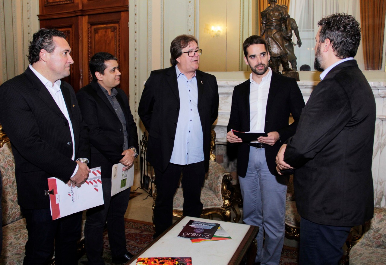 Presidente do SICTC, Joel Brando Klippel, e o executivo comercial da entidade, Juliano Mapelli, estiveram no Palácio Piratini na companhia do diretor da Merkator, Frederico Pletsch. O deputado Issur Koch também acompanhou a visita.