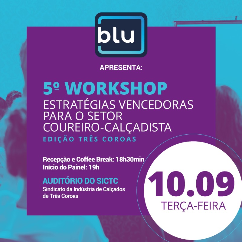 No dia 10 de setembro, a partir das 18h30, o Sindicato da Indústria de Calçados, Componentes para Calçados de Três Coroas (SICTC) recebe, no auditório de sua sede (Rua Duque de Caxias, 90, bairro Vila Nova), o 5º Workshop Estratégias Vencedoras para o Setor Coureiro-Calçadista. A programação terá participação do diretor de Desenvolvimento de Negócios da Blu (Rio de Janeiro/RJ), Eduardo Genton; do presidente do SICTC e diretor da Ssaltec (Três Coroas/RS), Joel Brando Klippel; do especialista em Recursos Humanos e professor da Faccat Fernando Dewes, do diretor da Merkator Feiras e Eventos (Novo Hamburgo/RS), Frederico Pletsch, e do CEO da Usaflex (Igrejinha/RS), Sergio Bocayuva. O bate-papo terá mediação do editor-executivo do Jornal Exclusivo, o jornalista Michel Pozzebon, e da jornalista e proprietária da RP Comunicação & Conteúdo, Roberta Pschichholz.