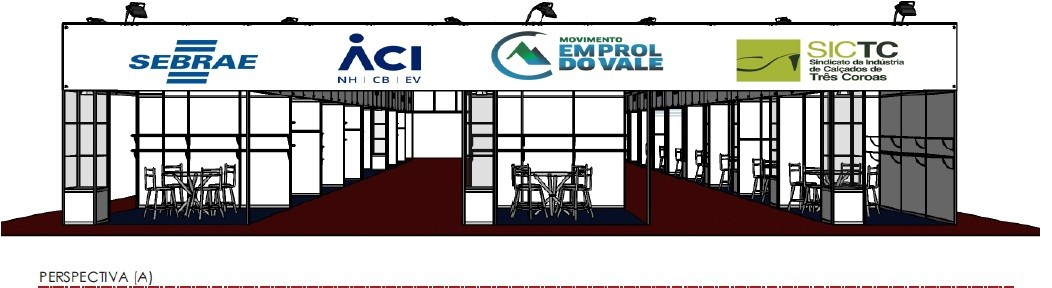 Layout do estande Projeto Fornece, com marca do SICTC na fachada