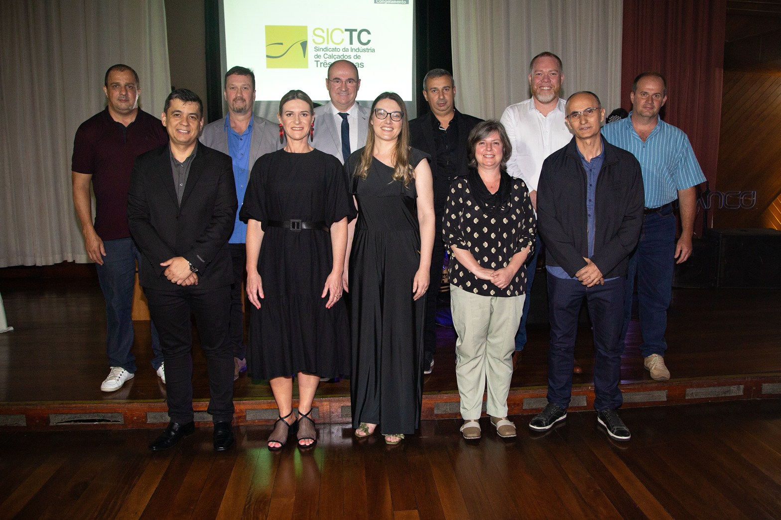 O Sindicato da Indústria de Calçados, Componentes para Calçados de Três Coroas/RS, SICTC, realizou jantar de posse da nova diretoria na noite de 25 de novembro último. A nova equipe diretiva, apresentada no evento aos associados, assume a entidade a partir de janeiro de 2022. Joel Brando Klippel deixa a presidência e dá lugar a João Batista Vargas de Souza (na foto, de preto, à direita). Abaixo, veja como fica o novo grupo de trabalho para a gestão 2022/2024.