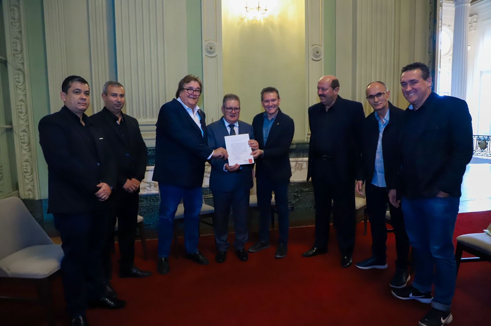 Uma comitiva liderada pelo deputado estadual Dalciso Oliveira (PSDB) e pelo diretor da Merkator Feiras e Eventos, Frederico Pletsch Neto, fez a entrega do convite juntamente com membros do Sindicato da Indústria de Calçados, Componentes para Calçados de Três Coroas/RS, SICTC e do Sindicato da Indústria de Calçados de Igrejinha/RS.