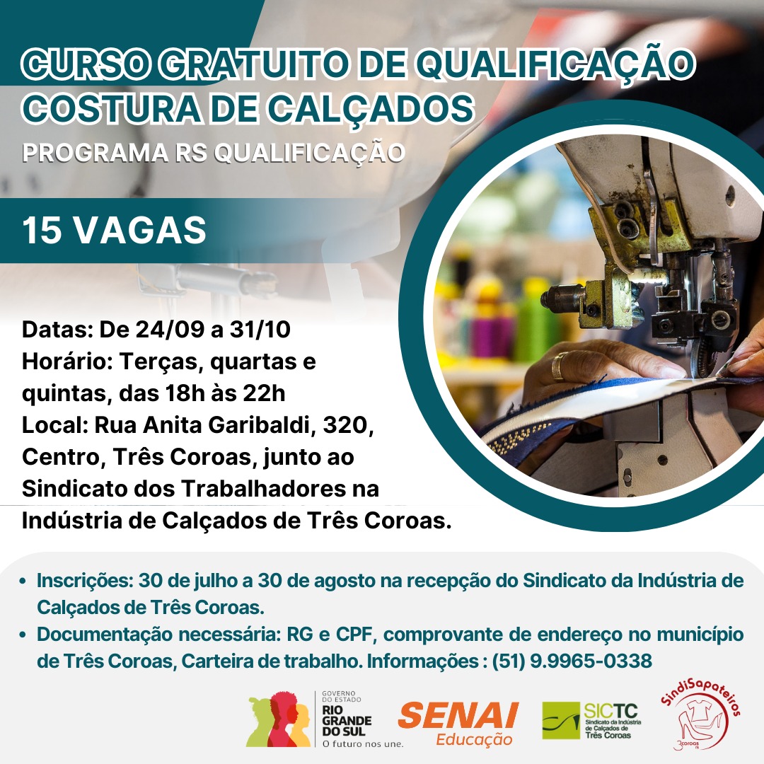 Curso Gratuito de Qualificação Costura de Calçados